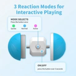 - Blauw: normale speelmodus (de bal rolt langzaam om de hond uit te dagen en zal interacteren zodra de hond de bal aanraakt)