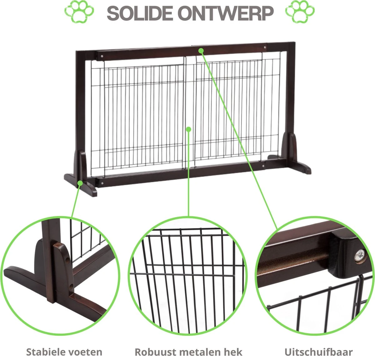✓ Stabiel – door de grote steunpoten super stabiel, de beste bescherming voor je baby of huisdieren zoals honden en katten