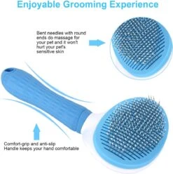 - Intrekbare borstelharen: de zelfreinigende slickerborstel is enorm gemakkelijk te gebruiken en schoon te maken; nadat u op de knop hebt gedrukt en de borstelharen hebt losgemaakt, kunt u beginnen met het borstelen van uw huisdier; na het borstelen drukt u nogmaals op de knop om de borstelharen in te trekken; de vacht kunt u gemakkelijk wegvegen, zodat u geen plukken vacht meer uit uw huisdierborstel hoeft te peuteren.