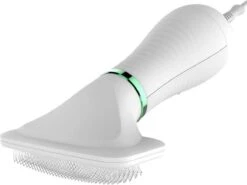 De hondenföhn met borstel is een apparaat wat iedereen met een hond, of andere huisdieren, zou moeten hebben! het is zeer handig en scheelt u mega veel tijd. Uw hond zal het minder erg vinden om geborsteld te vinden, omdat de haren van uw dier veel mooier, gladder en gezonder eruit zal zien. Het is erg aan te raden bij honden die net uit bad komen of net klaar zijn met zwemmen. Ook is het erg aan te raden als u uw hond wekelijks borstelt! Het apparaat heeft ook nog is twee temperaturen voor een optimaal gebruik voor de vacht van uw dier (80 graden, 60 graden). Het apparaat heeft een RVS kam wat eenvoudig de klitten van uw dier zal wegnemen, samen met de warme föhn zal er niks lekkerders zijn voor uw dier!