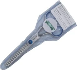 De effileerschaar is een professionele, 6 inch/15,24 cm. De schaar is gemaakt van hoogwaardig roestvrij staal. Deze uitdunschaar is speciaal ontworpen voor het verzorgen van huisdieren en is een belangrijk hulpmiddel voor elke dierenverzorger of huisdiereigenaar. De schaar weegt slechts 58g en is verkrijgbaar met een prachtige blauwe kleur als afwerking en grip in de ogen van de schaar.