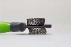 De borstel heeft een praktisch gelhandvat dat zich vormt naar je hand. Als hier haar op achterblijft na het kammen, dan kan je dit eenvoudig reinigen met een vochtige doek of onder de kraan.