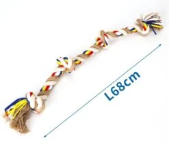 Het perfecte speeltouw voor de grotere honden! Het touw is wel 68 cm lang. Gemaakt van katoen, super sterk, 100 % natuurlijk materiaal en voorzien van verschillende dikte draden voor goede flos eigenschappen.