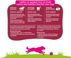 Hoewel het aan de buitenkant soms nog niet zichtbaar is, verandert er veel aan de binnenkant bij een oudere hond. Organen zoals de lever en de nieren gaan minder goed functioneren en de opname van voedingsstoffen door de darmen verloopt minder efficiënt. Oudere honden zijn niet meer zo actief als voorheen, daarom dat deze voeding minder energie bevat maar meer hoogwaardige eiwitten die de verteerbaarheid vergroten. Door de toevoeging van Glucosamine en Chondroitine wordt het behoud van soepele en gezonde gewrichten extra ondersteund. De toevoeging van vitamine E draagt bij aan het gezond ouder worden van uw trouwe vriend.