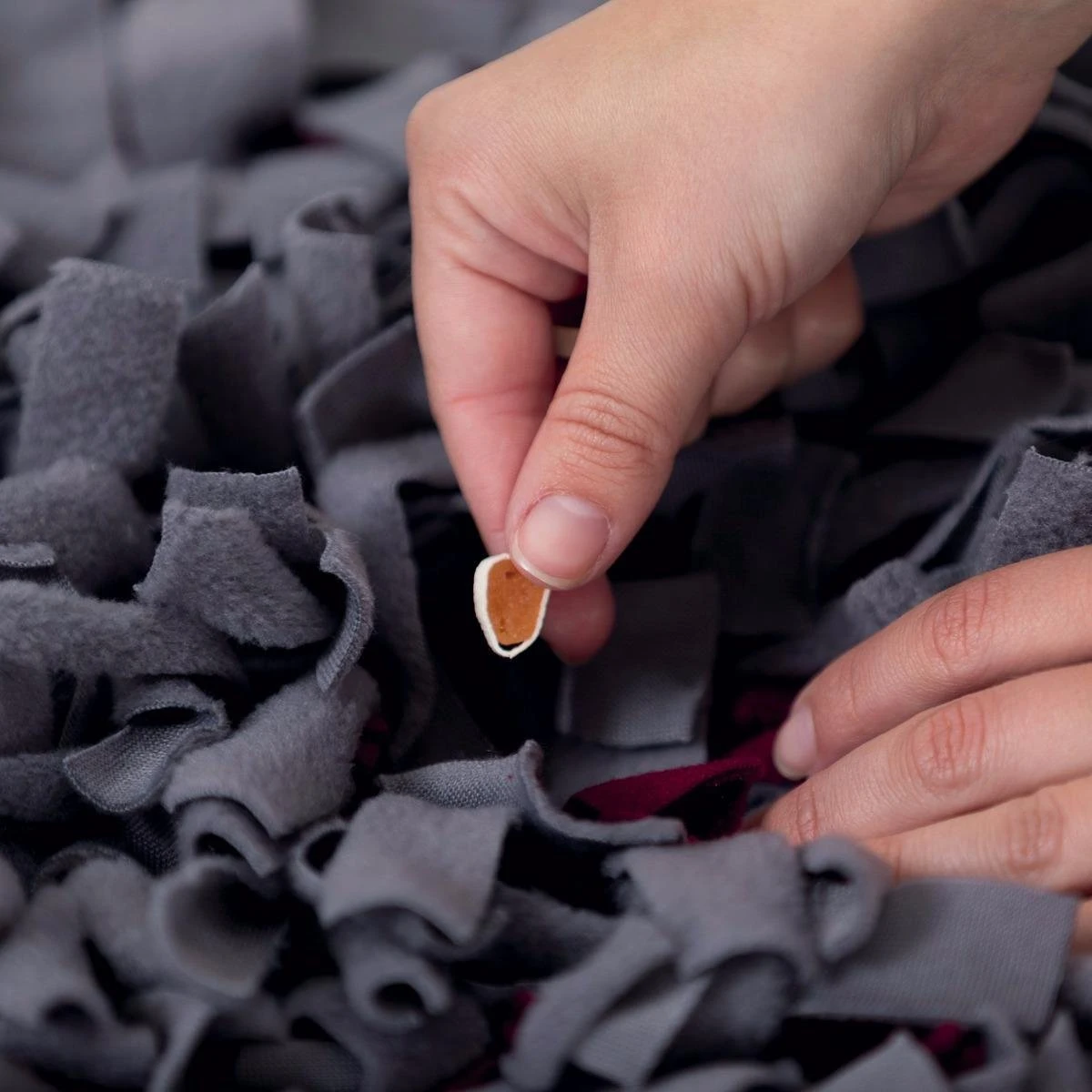 Deze leuke Activity Snuffelmat van Trixie ga je verveling tegen en wordt eten een feest! Deze mat bestaat uit allemaal losse stroken stof, waartussen je voer of beloningen voor jouw hond kunt stoppen. Jouw hond zal zijn neus moeten gebruiken om zijn beloning of brokken tussen alle laagjes van de mat te kunnen vinden. Zo is hij of zij lekker lang bezig met eten, is de kans op schrokken minder en spreek je het natuurlijke speurgedrag van jouw hond aan.