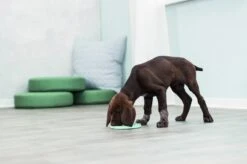 De Trixie Junior Likplaat Mintgroen van 15 x 15 cm is een ronde Lick’n’Snackplaat voor puppy’s en kleine honden, ideaal om bezig te blijven met bijvoorbeeld paté, natvoer of zuivelproducten. Likken is voor honden een prettige bezigheid: het werkt kalmerend en zorgt voor rust. In deze likplaat kun je daarom lekkere traktaties zoals paté, natvoer of zuivelproducten stoppen. De hond zal langdurig bezig zijn met het weglikken van de beloning, wat zo verveling voorkomt met slechts opname van een geringe hoeveelheid snacks. In de zomer kun je de praat inclusief snacks bovendien invriezen, zodat jouw pup verkoeling heeft én nog langer bezig is zijn traktatie te pakken te krijgen.