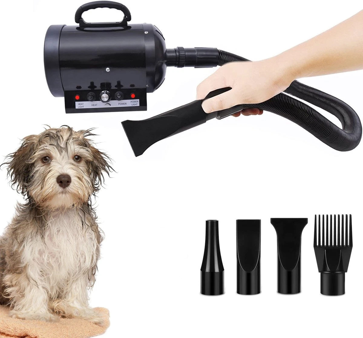 Deze krachtige hondendroger met opzetstukken maakt jouw hond en blij!